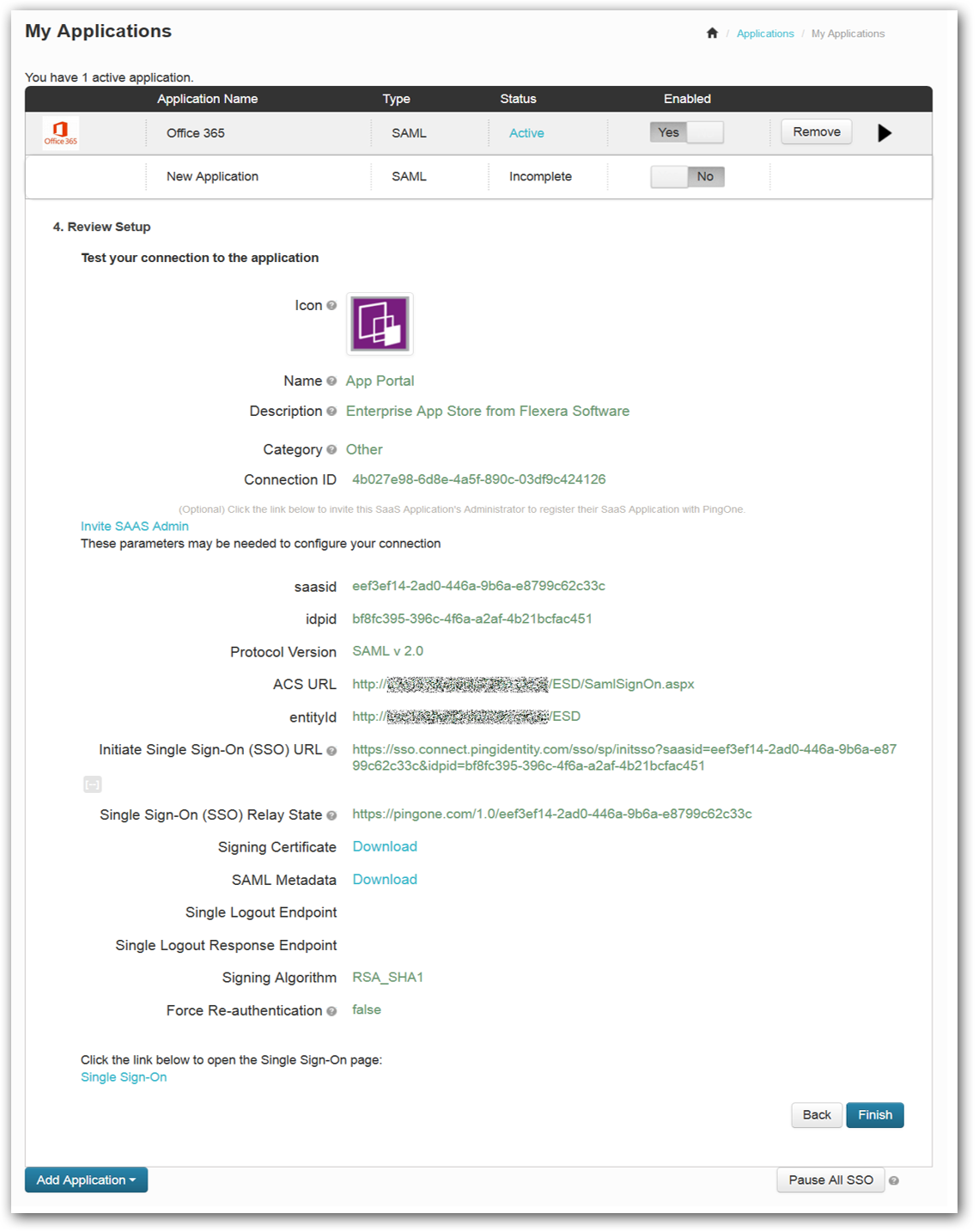 18. Review your settings and click Finish. App Portal should now appear in your list of active applications.