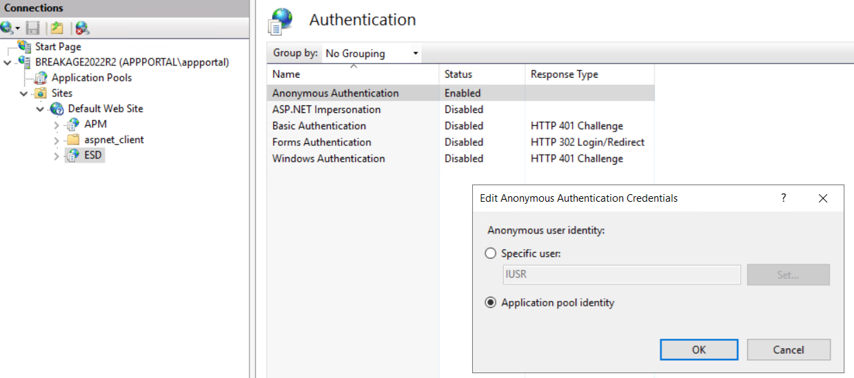 13. To configure IIS to use anonymous authentication instead of Windows authentication, perform the following steps.