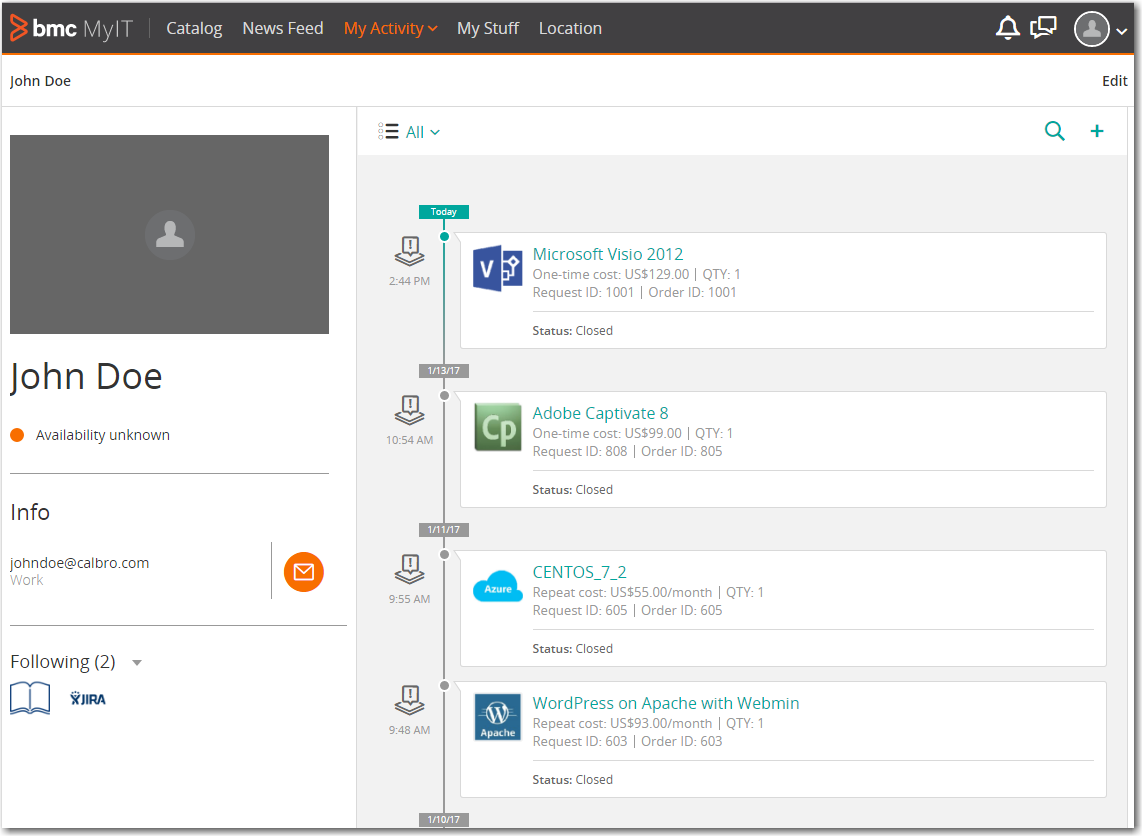 7. Click on My Activity > All activity. The request that you just completed is listed.