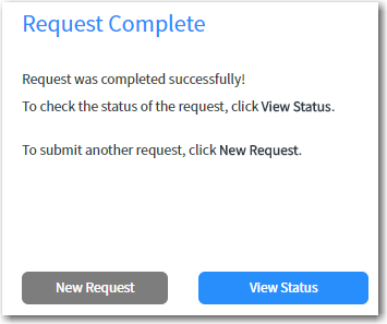 17. Click View Status to open the Request Status page, which lists the status for all submitted requests. For more information, see Viewing Request Status.