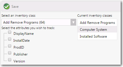 In the Select an inventory class list, select a new class, such as Add Remove Programs (64). Attributes of that class are listed.