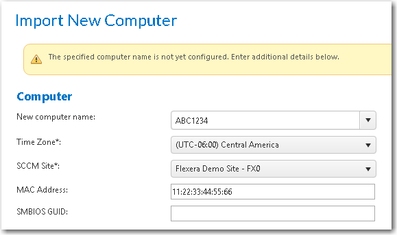 MAC Address SMBIOS GUIDEnter either the MAC address or the SMBIOS GUID the computer you are importing.