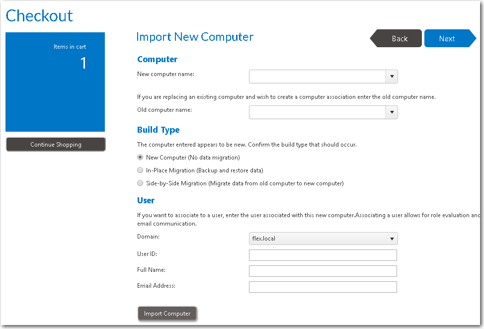 2. Select Image a new computer or existing computer and click Next. The Import New Computer panel opens.