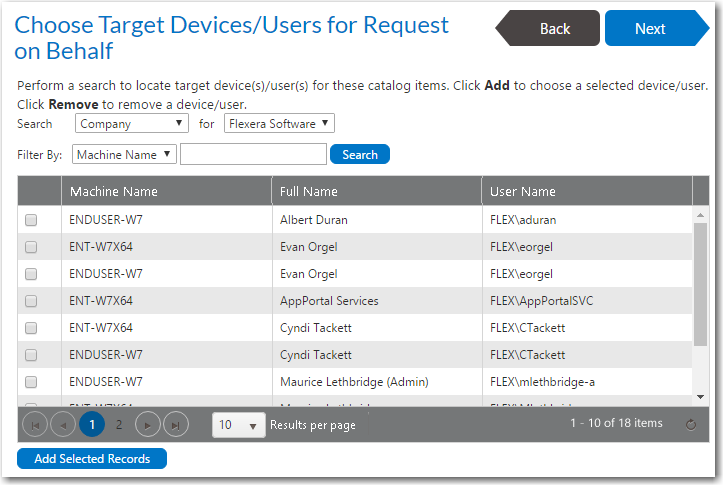 Search for targets using the Filter By fields: User Name, Full Name or Machine Name.